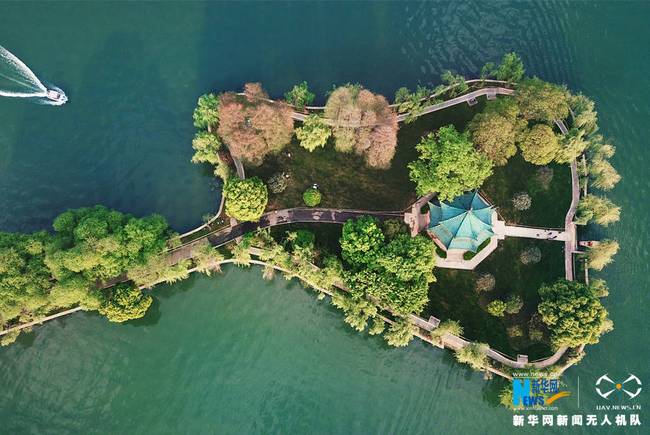 空中俯瞰美丽的杭州西湖全景。新华社记者徐昱摄