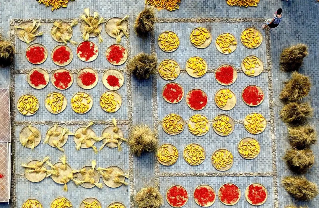 大好时节,田野果园、庭院内外处处金黄火红,美丽动人。