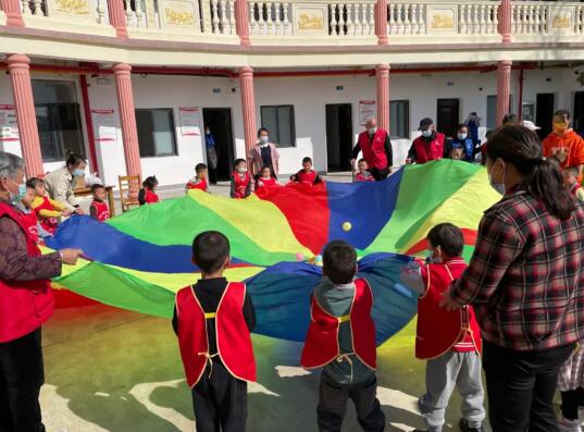 表演过后,孩子们自发地来到爷爷奶奶身边一起搭积木、玩数字游戏,志愿者与老人们聊天送上慰问品,现场老幼同乐场面温馨。
