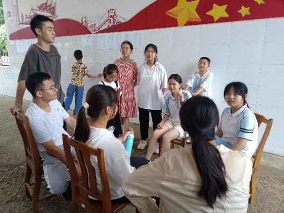 活动内容:周三的课程由于学校设备和一些意外情况,常规的课程都被打乱了,但是老师们还是克服了很多困难,带领学生们度过了非常愉快的一天。科普课向六年级的学生们介绍了中国画,大多数孩子看到漂亮的国画图片发出来惊叹声,老师还向孩子们介绍了齐白石避世保节的故事,引导孩子们树立积极向上的价值观;绘画课因为停电的原因没有空调,而且白板也不能用,但是老师立刻对这种情况做出紧急反应,让同学们每人拿张纸扇防止过热中暑,以老师为中心坐,讲解中西绘画发展史,在老师的电脑上观看相关作品,同学们对绘画史非常感兴趣,互动热情非常高,即使炎热也没有削弱他们的学习积极性。而周三下午天气持续炎热,停电时间过长,考虑到学生的身体健康,老师们决定放假半天,带领学生们在操场上玩耍,同时做好了防中暑措施。老师们和学生们打成一片,在玩耍中逐渐了解学生的近况。声乐课老师还给学生们弹奏吉他,大家一起唱歌,和着时不时吹来的凉风,气氛十分愉快和谐。虽有学生出现中暑发烧的情况,但老师们都接受过安全培训,及时处理,同学的不适症状得到缓解。总体而言,虽然出现很多意外,但是全体师生反而在这样的意外中拉进了彼此的距离。