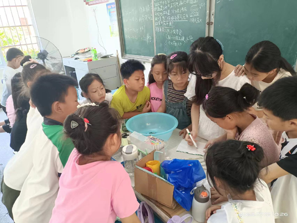 活动内容:科学实验课。“复活”毛毛虫实验:将要进行的实验材料先展示出来,让同学们明白要准备的材料有哪些。接着,将班里的所有同学分成几个小组,让他们以分组顺序上讲台围观实验操作过程。准备好一张干净整洁的白色纸巾,准备四种颜色的彩笔,一只黑色记号笔、一根筷子、一个干净的盆。然后在白色的纸巾上画上四种不同颜色的条,之后将纸巾卷到筷子上,然后将纸巾推得皱在一起,就像一个毛毛虫。然后取下来,将它放入盆中,倒入一点水将其浸湿,我们会发现它会变长,而且还会动那么一下。最后分组展示完毕之后,和同学们总结实验现象是纸巾遇水会变长、还会动。实验原理是植物纤维吸收水分子,具有很强的吸水性。