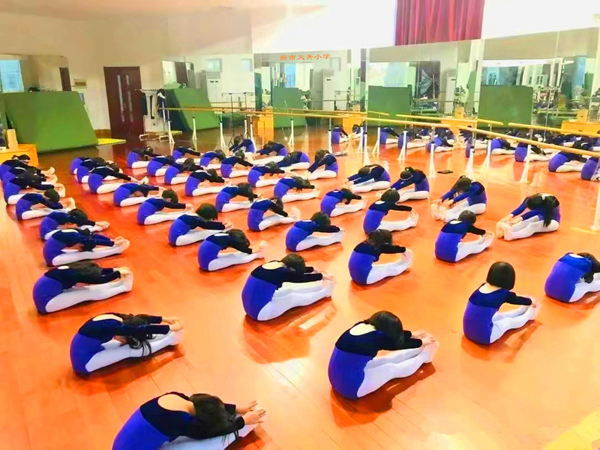 孩子们课堂上认真训练形体