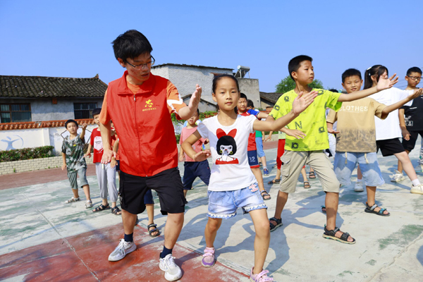 志愿者带孩子们进行体育锻炼志愿者带孩子们进行体育锻炼