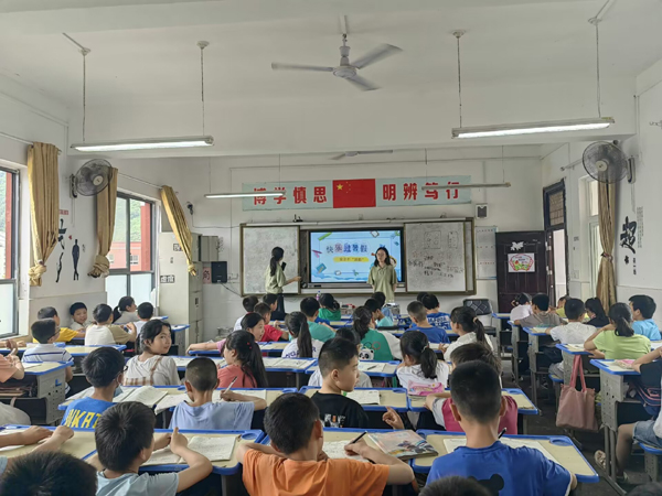 活动内容:来自湖北汽车工业学院的志愿者们将所有同学集结完毕后,开展了暑期少年宫开班仪式。开班仪式上,郧阳区南化塘镇中心小学校长李光国首先对志愿者服务队的到来表达了感谢。接着提出两点希翼:一是希望大学生们作为新时代的新青年,能够在实践中锻炼自己的能力,丰富自己的阅历;二是希望全体学生学会感恩,在志愿者老师的带领下,学习到一些新奇的科技知识,感受了解艺术之美,提升自己的学习能力,丰富自己的兴趣爱好。志愿者代表金家亿表示,自己从学校走进社会,从城市走进农村,从书本走上讲台,来到南化塘镇支教,不仅是一次锻炼实践的机会,同时也希望自己能够将优质的资源、新奇的知识传递给孩子们,将当代大学生良好的精神风貌、全新的教育理念和教学方法带给孩子们,竭尽全力,为农村学校艺体科技教育注入新的生机和活力。开班仪式结束后,副校长张士强带领志愿者参观学校,并详细了解了志愿者们的相关情况。志愿者们还为学生们开展了暑期安全教育课程,让他们对暑期容易发生的突发事故有一个大致的了解并能作出合理的判断预防。