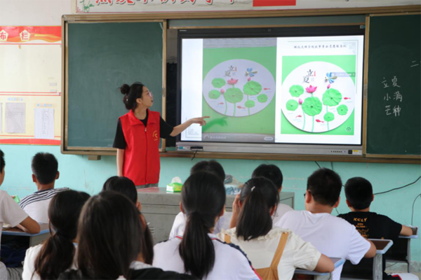 活动内容:为弘扬中华优秀传统文化,营造浓厚的中华传统文化校园氛围,同时让同学们更加了解气候变化与中国农耕文明,扶梦青云志愿服务队于7月11日在毛嘴中学开展“中华优秀传统文化进校园——二十四节气文化宣传”活动。志愿者们以二十四节气为切入点,将中华优秀传统文化融入到教学中去,以手工贴画、美术绘画的形式生动呈现传统文化,孩子们积极参与到手工制作、艺术绘画当中,感受传统文化的魅力,在潜移默化中接受优秀传统文化的熏陶。