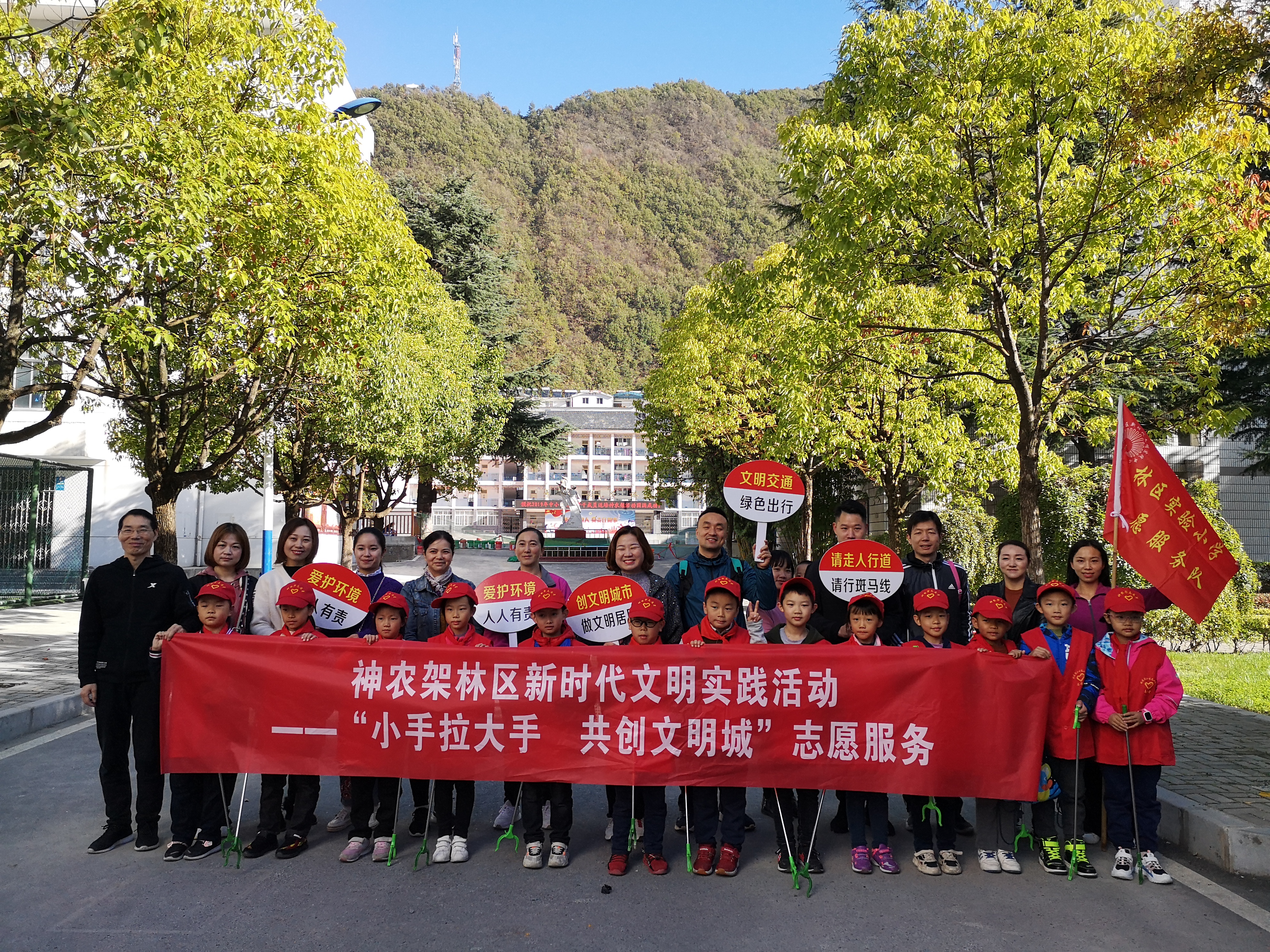 近年来,神农架林区实验小学积极发挥德育主阵地作用,落实家校联合育人导向,招募“神农小精灵”志愿服务队,动员全校学生积极参与“小手拉大手,共创文明城”志愿服务活动,引导未成年人在参与社会实践中树立责任意识、文明理念和奉献精神,实现德智体美劳全面发展。