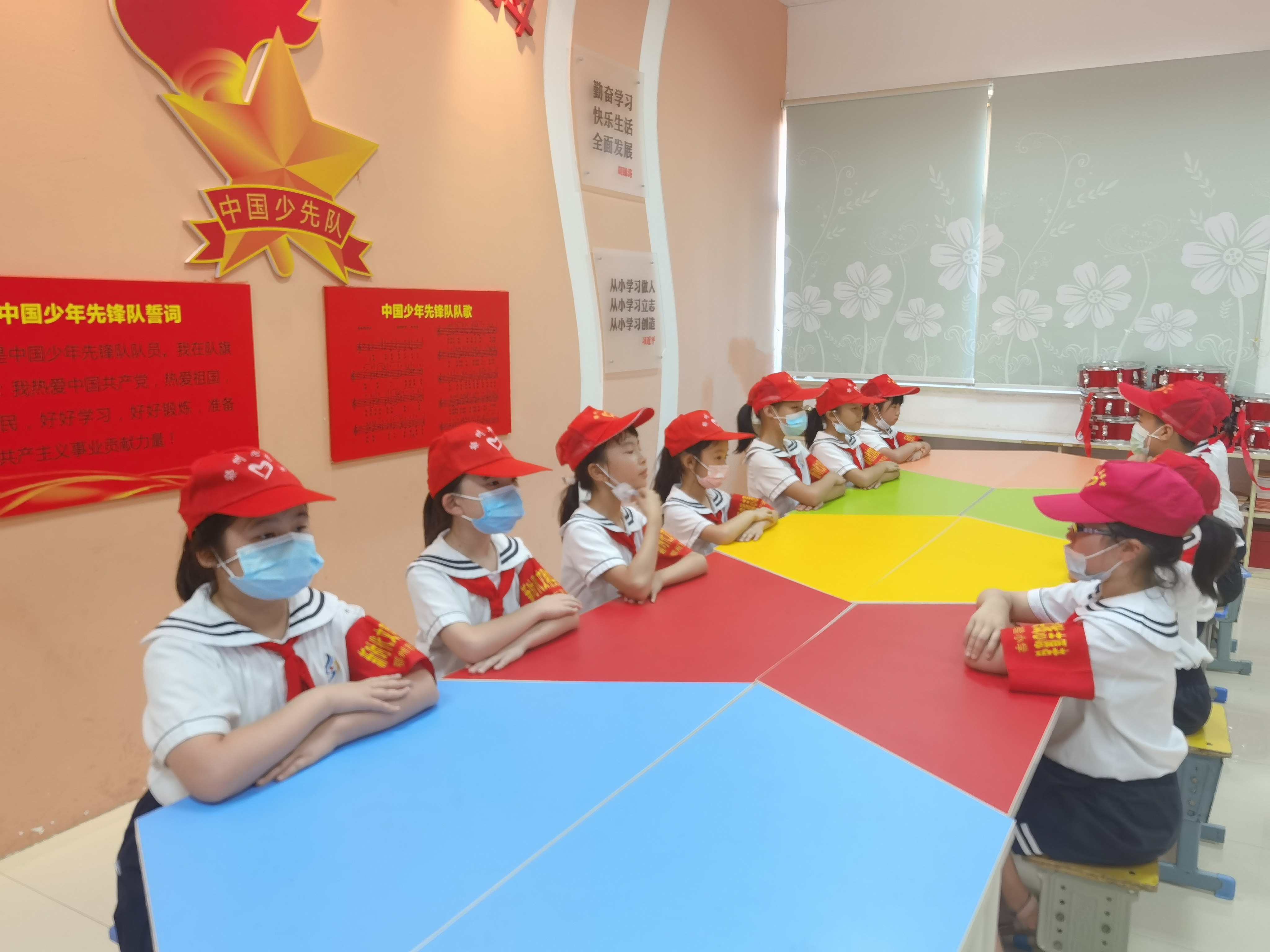 每天清晨,戴着啄木鸟监督岗红袖章的红领巾志愿者早早来到学校,引导全校队员们有秩序地走进校园,进入教室,开始充实的一天;每天课间,他们深入各个班级,对各中队的卫生、礼仪、眼保健操等情况进行评价,评选出每周的阳光中队;他们走进华仁康复医院,用美妙的歌声、动情的朗诵、优美的舞蹈为康复中的老人送去欢乐;他们走进社区,开展寻找错别字、垃圾分类、环境保护宣传,共同缔造干净美丽的社区环境;与特殊教育学校手拉手开展“圆梦微心愿”活动,共享阳光下的快乐……