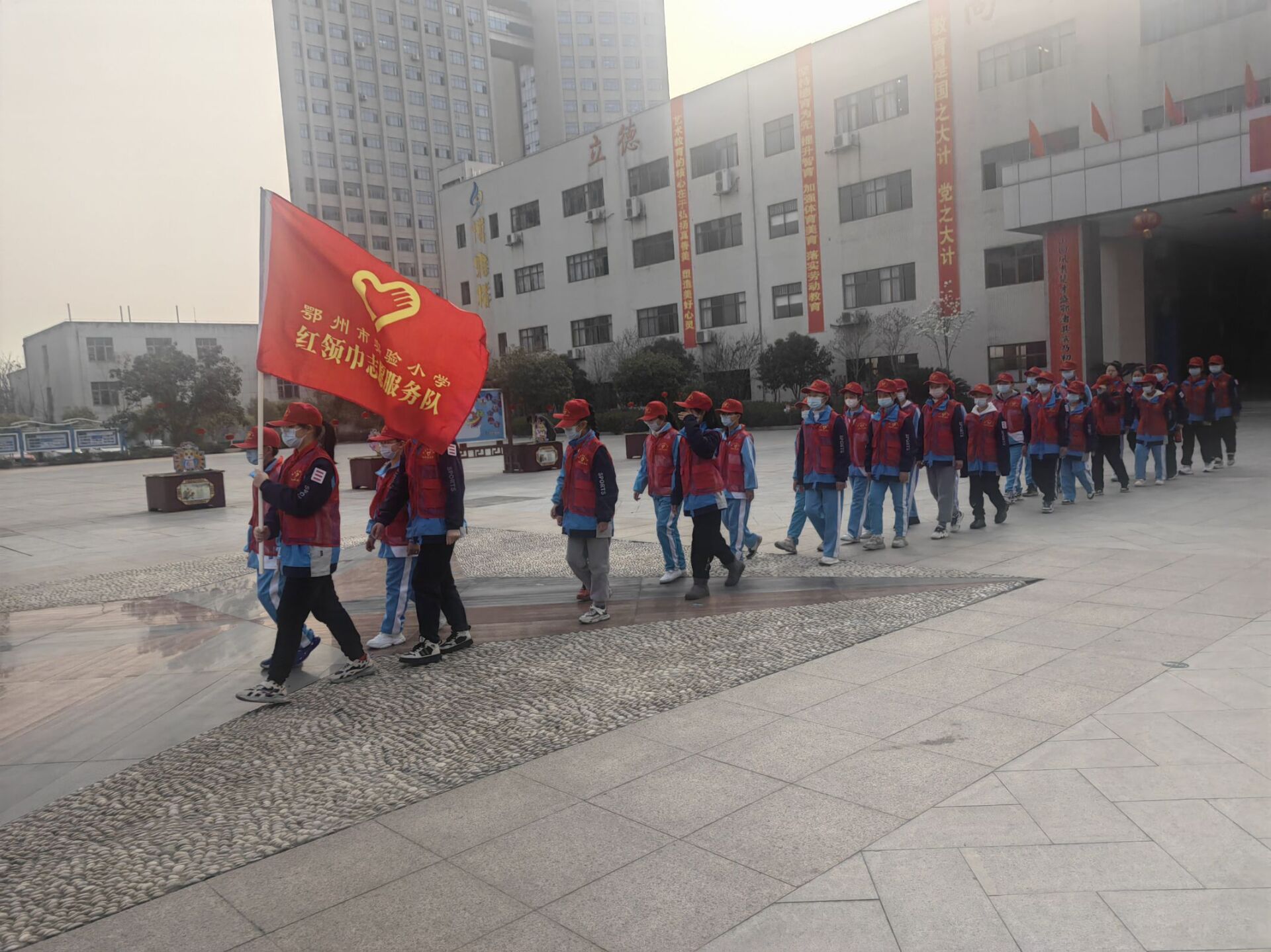 鄂州市实验小学红领巾志愿服务队成立于2012年9月,10年来,已有4320名队员参与红领巾志愿服务队“啄木鸟”行动,小小红领巾志愿者通过志愿服务带动同学们践行文明礼仪,将文明之苗种在同学们心田。