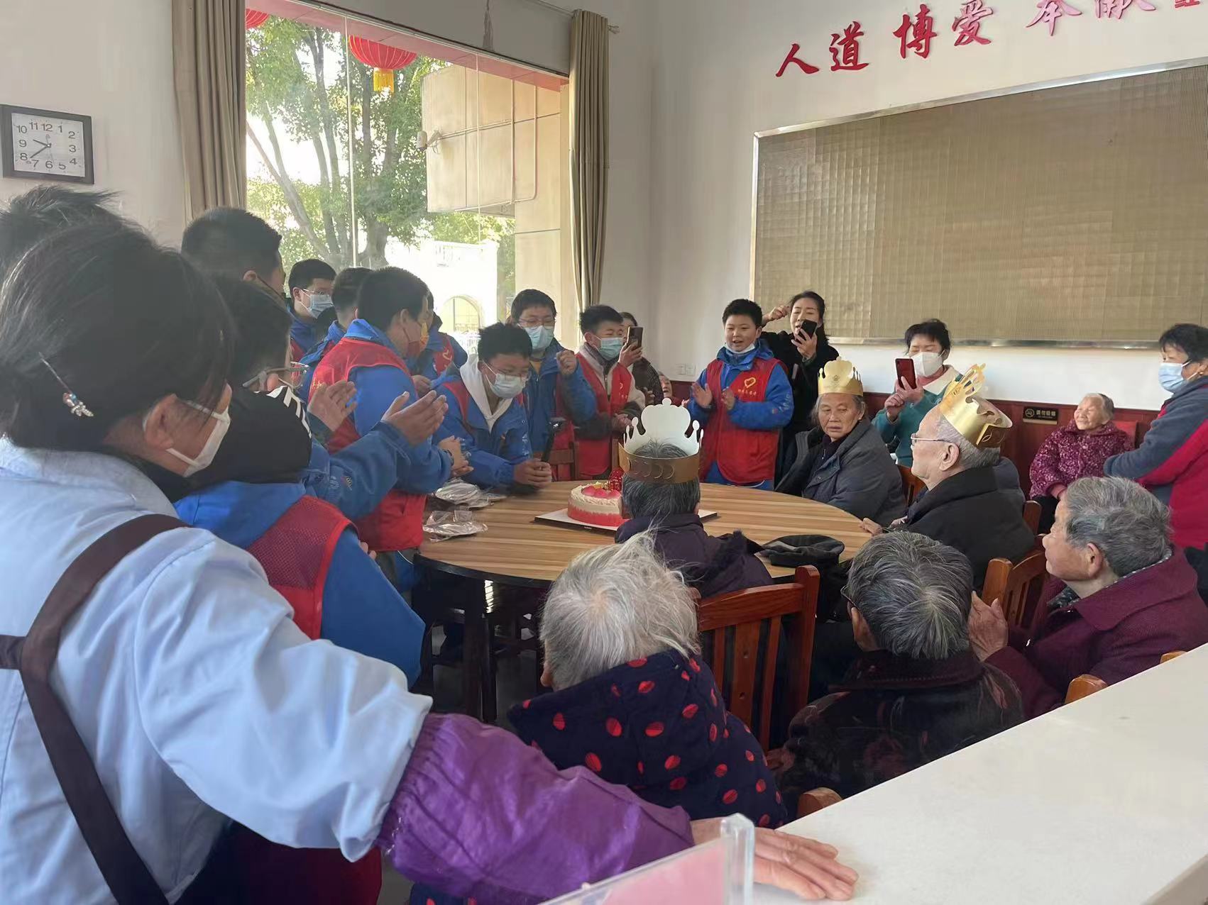 过完生日宴,孩子们还给老人们带去了快板、唱歌、集体诗朗诵等丰富多彩的才艺表演,带着老人们回忆曾经的青春岁月,陪老人们聊天,听老人们讲解抗日战争、抗美援朝时期的故事,给老人们送去了精心准备的糕点,帮助老人整理房间,用实际行动践行习近平总书记“雷锋精神,人人可学;奉献爱心,处处可为。积小善为大善,善莫大焉”的谆谆教导,续写新时代雷锋故事。