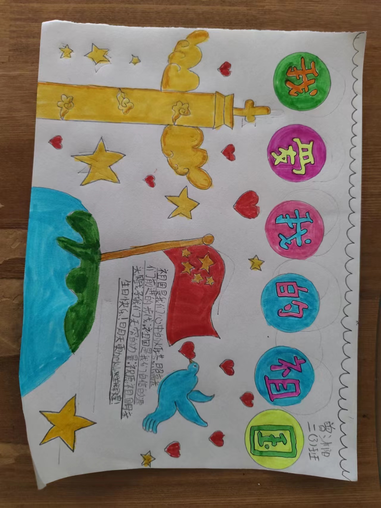 新时代的我们,要时刻铭记五星红旗的好处,深刻体会新中国的胜利来之不易。作为教育工作者,我们必须要牢记使命,不负众望,坚持立德树人,引领青少年树立正确的人生观,价值观,为实现中华民族伟大复兴的“中国梦”而奋斗终身!(荆门市掇刀区军马场学校曾沐阳)