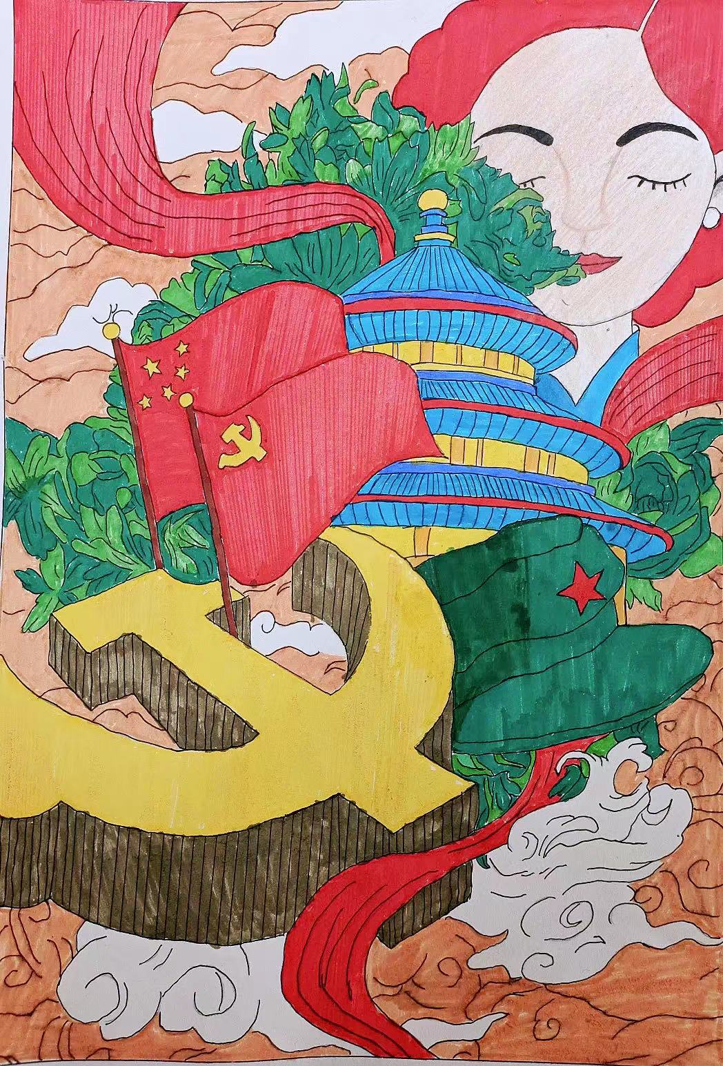 中国如同母亲,在母亲的照顾下,一切欣欣向荣、充满活力。我们每个中国人都要为国家的繁荣富强而努力奋斗!(荆门市掇刀区月亮湖小学 石睿婕)
