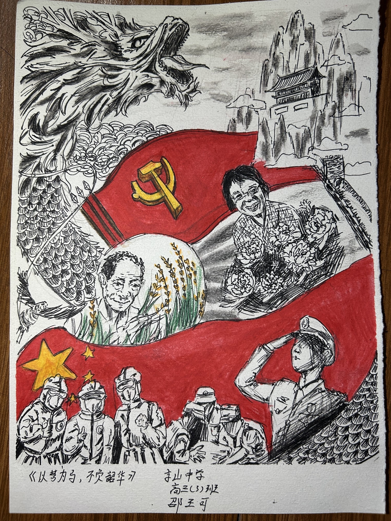 如果生命有颜色,它一定是中国红。我爱我的祖国,就像星河与焰火,互相包裹,永不失落。(荆门市京山县京山中学邵王可)