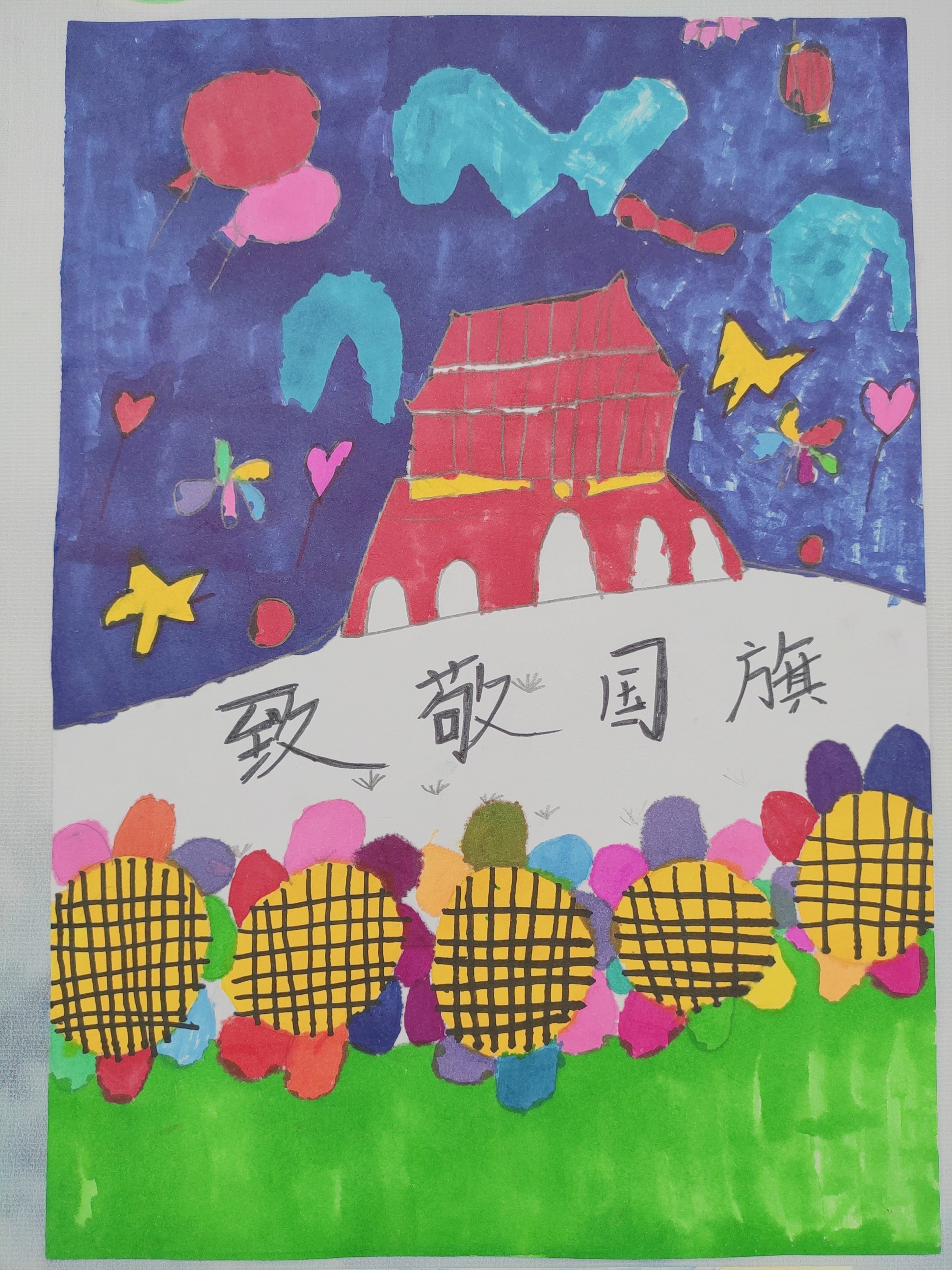 这幅画表达了我对祖国的热爱!(十堰龙泉黄冈学校江梓晨)