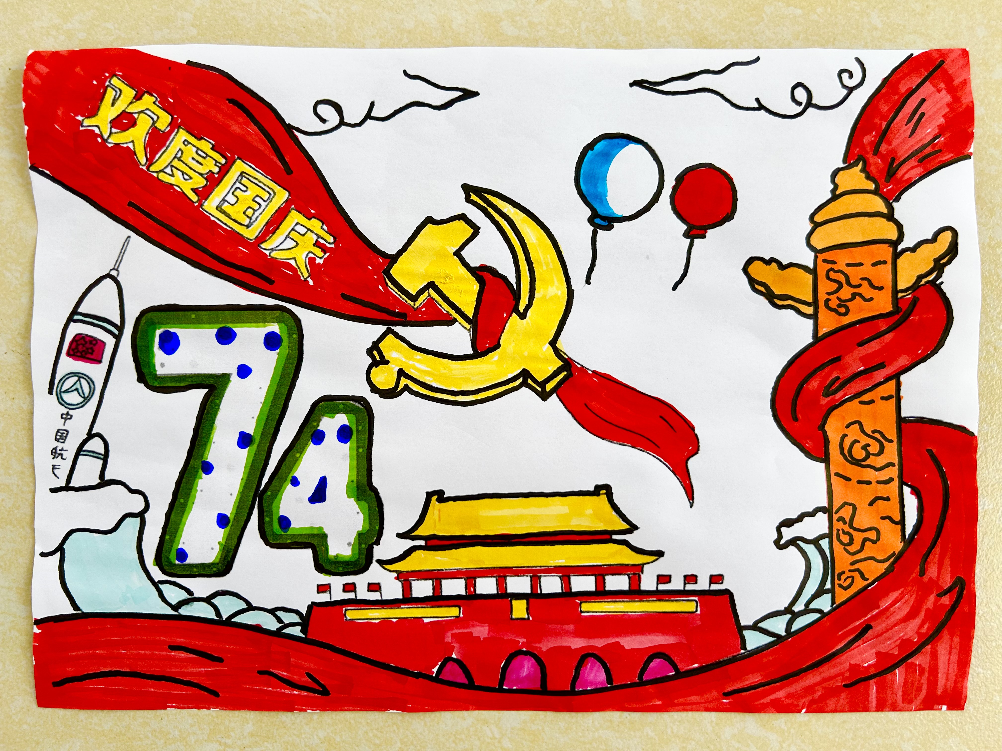 国庆节即将来临,小画者用手中的画笔描绘了北京天安门,中国航天,描绘出祖国的强大繁荣昌盛。让我们一起欢度国庆!(黄冈市罗田县城东幼儿园胜利一园区鄂可卿)