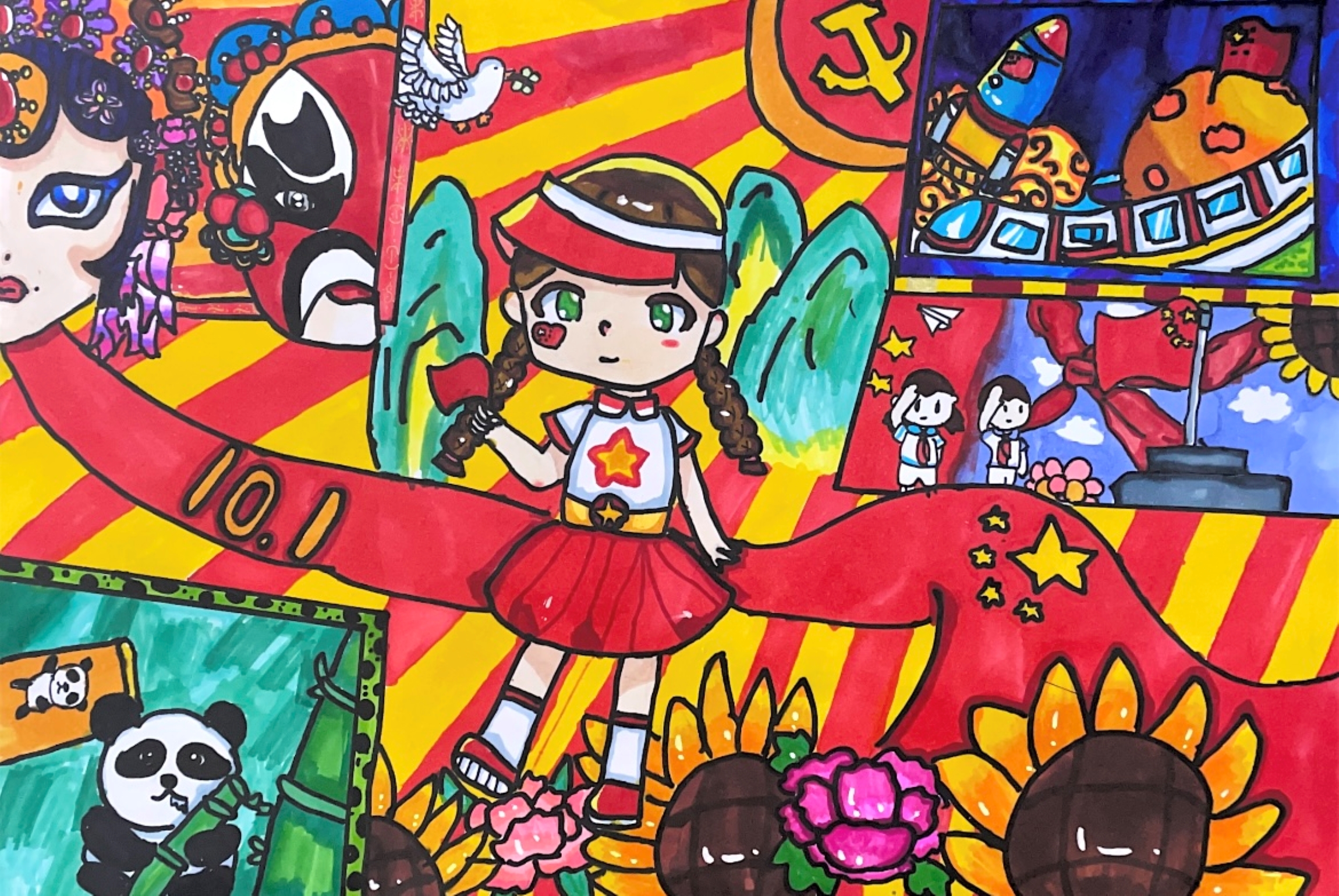 红旗猎猎随风飘,国泰民安幸福来!(恩施市博文学校白馨睿)