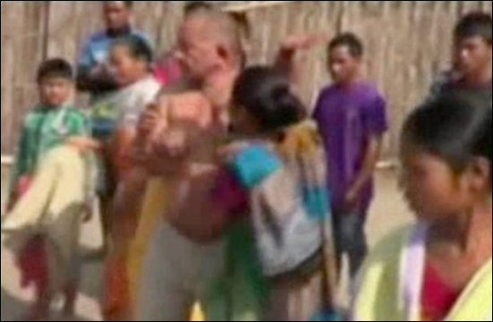 印度议员布拉马因潜入民宅强奸女子遭村民群殴(视频截图)