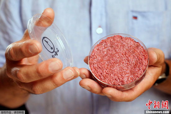 当地时间8月5日,世界上第一片“人造牛肉”在英国首都伦敦问世。当地厨师在黄油和葵花油中将这片牛肉微微煎了一下,做成了首个人造牛肉汉堡,并在伦敦一家餐厅对进行试吃。