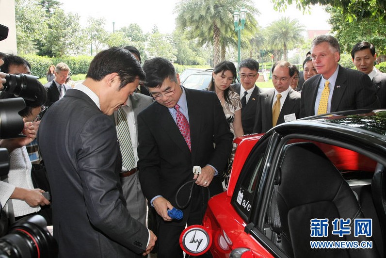 2010年5月17日,骆家辉在香港参观环保车。新华社发
