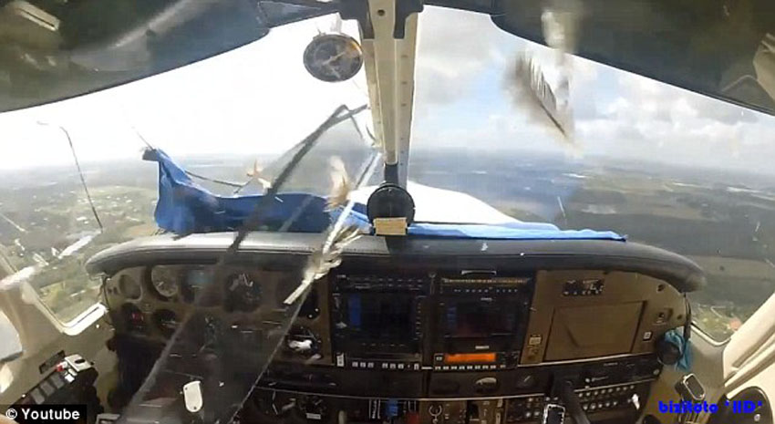 飞机上的摄像头记录大鸟撞飞机瞬间(视频截图)