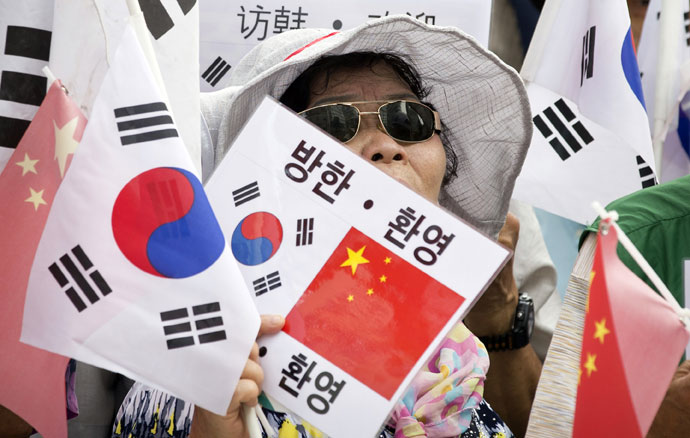韩民众集会欢迎习近平访韩 称“钓鱼岛是中国的”