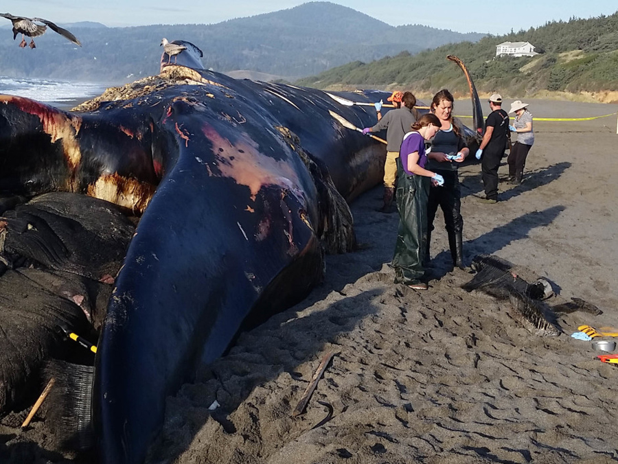 美国一海滩现24米长蓝鲸尸体 重100吨(组图)
