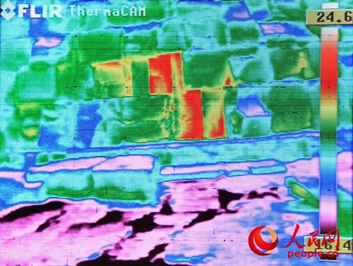 热成像图实况照片,两个高温石块十分显眼。韩晓明摄