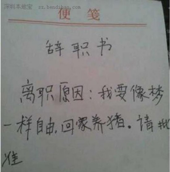 虽然在中国还未出现要辞职回去当国王的事情,但是中国人民的辞职理由也是各有千秋。