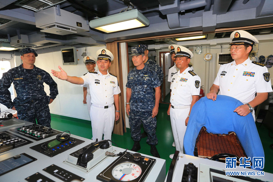 当地时间12月15日下午,美海军太平洋舰队总司令哈里斯上将参观编队济南舰。 代宗锋摄