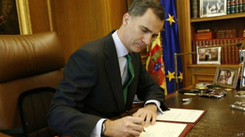 西班牙国王签署解散国会的诏令。(图片来源:法新社)