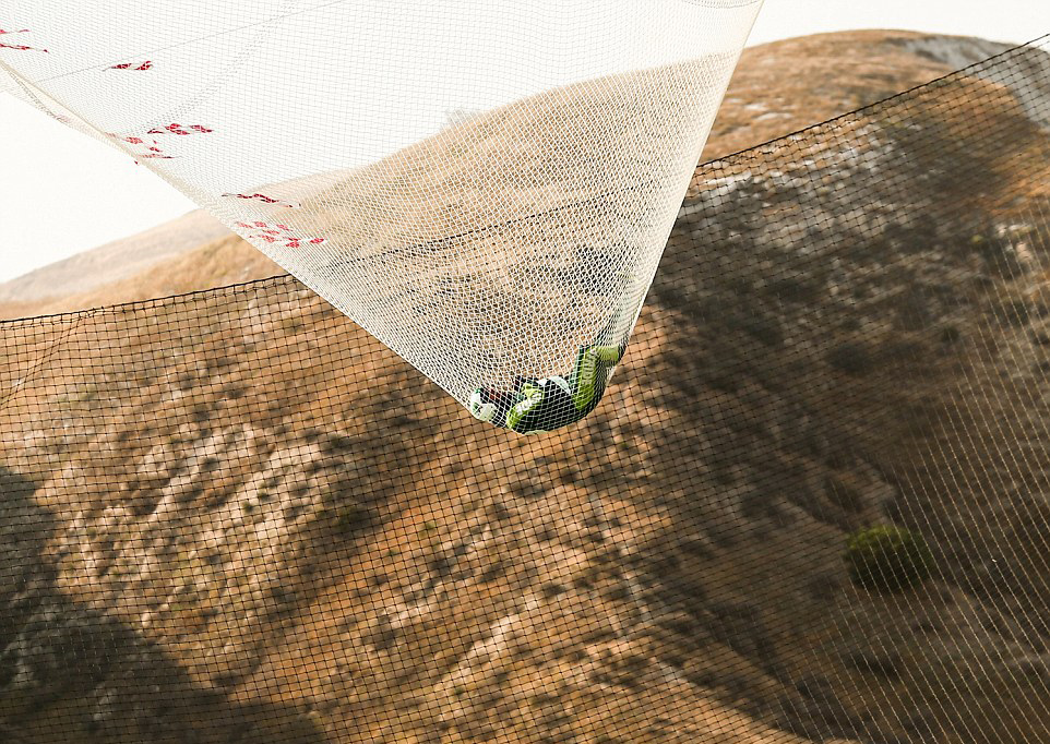 当地时间2016年7月31日,世界迎来了一项新的吉尼斯世界纪录,而它也可以称得上是最危险的挑战。美国跳伞员卢克·艾金尼斯在不携带降落伞的情况下,从7600米的高空跳下,并成功落到一个1/3足球场大小的安全网上。(网页截图)