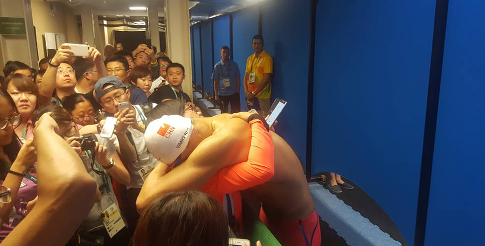 赛后,离开混合采访区前,孙杨突然情绪失控,当众痛哭起来……随后他硬撑着接受完了采访,“训练都是按照节奏来的,按部就班的,按照这个训练量应该拿金牌的。”对于失利是否跟之前脚伤有关,他没来得及回答。