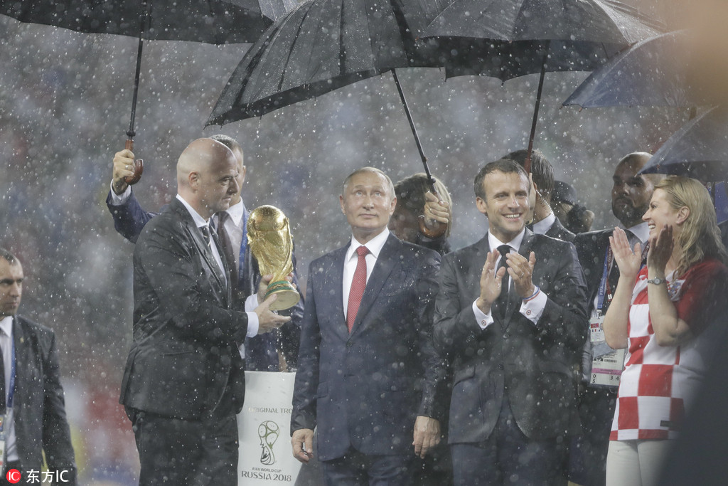 (世界杯颁奖下暴雨;普京;克罗地亚)
