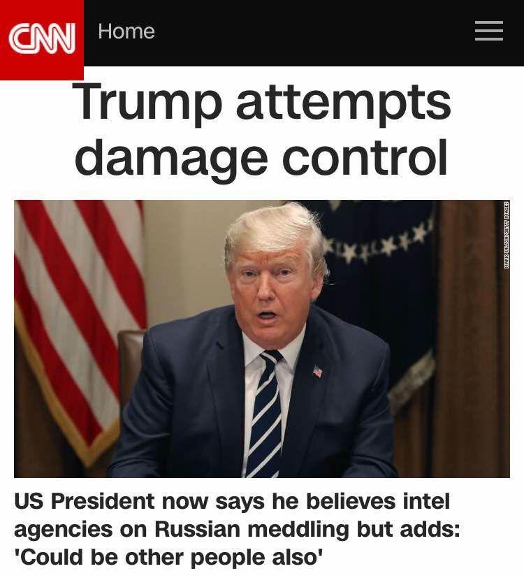 就在特朗普改口时,美国NBC梳理了一下特朗普相信普京不相信美国情报机构在全世界引发的反应。其中欧洲的情绪是“惶恐”,俄罗斯的情绪是“胜利”。 俄罗斯媒体《俄罗斯报》说,西方孤立俄罗斯的努力失败了!