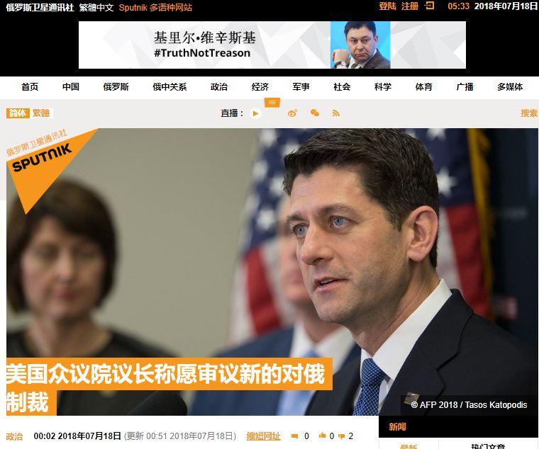 俄罗斯卫星网报道截图