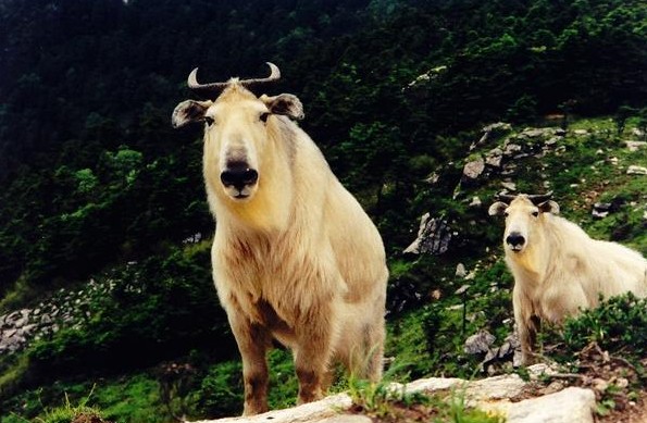 羚牛生活在海拔2,000~4,500m的竹林中,其在中国的分布地区与大熊猫相似,数量稀少,因此也被视为“国宝”。而在不丹羚牛则被视为国兽。在不丹首都辛布山野的保护区里看到“塔金”的。整个不丹境内仅有300只左右。它们主要以草、树叶及花蕾为食,一般在白天活动。