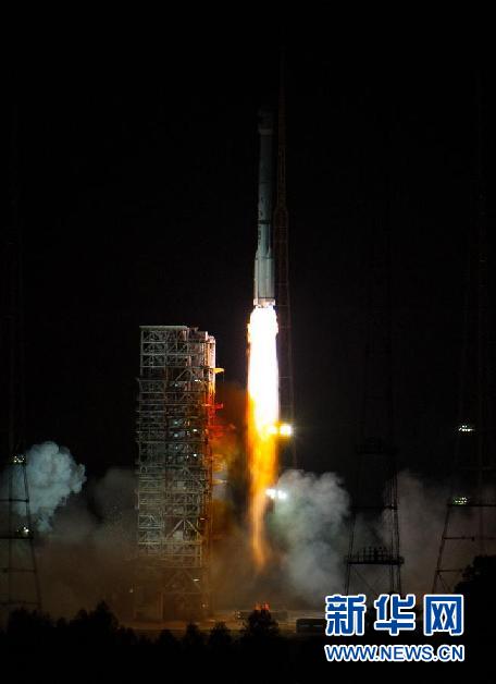 10月25日23时33分,我国在西昌卫星发射中心用长征三号丙运载火箭,成功将一颗北斗导航卫星发射升空并送入预定转移轨道。这是一颗地球静止轨道卫星,将与先期发射的15颗北斗导航卫星组网运行,形成区域服务能力。根据计划,北斗卫星导航系统将于明年初向亚太大部分地区提供正式服务。新华社记者刘潺摄