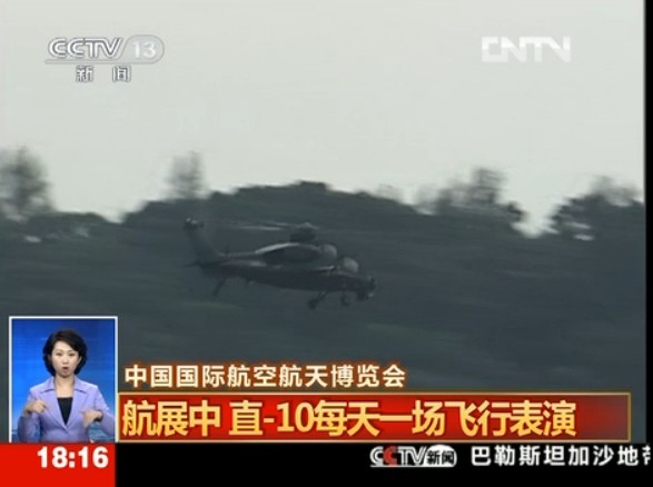 武直-10亮相珠海航展 展示倒飞低空盘旋特技(图)