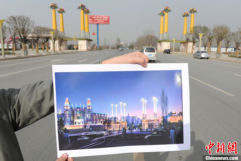 28日,针对网络盛传的西安市周至县酷似巨型香烟的北大门景观,记者赶赴周至县采访。周至县回应称,县城北大门项目为大周万景商贸城建设项目的一部分。大周万景商贸城建设项目作为2011年周至县招商引资的城市建设项目,符合县城规划要求。近日,有关“陕西贫困县百万建造北大门似巨型香烟”的帖子在贴吧、论坛及微博上流传,引发网络热议。图为建成后的效果图。张远 摄