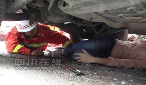 事发后,交警、消防、120医务人员迅速赶往现场,成功将孕妇救出。目前事发原因还在调查中。