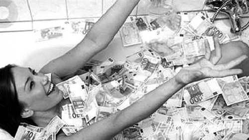 珍妮“晒”了一张自己在钱堆里“沐浴”的照片