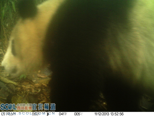 红外相机于2013年11月12日拍摄的大熊猫实体照片。(图片转自:四川在线)