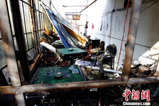 图为被天然气烧毁的麻将室。 胡贵龙 摄