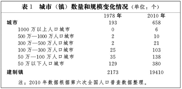 改革开放以来,伴随着工业化进程加速,我国城镇化经历了一个起点低、速度快的发展过程。1978-2013年,城镇常住人口从1.7亿人增加到7.3亿人,城镇化率从17.9%提升到53.7%,年均提高1.02个百分点;城市数量从193个增加到658个,建制镇数量从2173个增加到20113个。京津冀、长江三角洲、珠江三角洲三大城市群,以2.8%的国土面积集聚了18%的人口,创造了36%的国内生产总值,成为带动我国经济快速增长和参与国际经济合作与竞争的主要平台。城市水、电、路、气、信息网络等基础设施显著改善,教育、医疗、文化体育、社会保障等公共服务水平明显提高,人均住宅、公园绿地面积大幅增加。城镇化的快速推进,吸纳了大量农村劳动力转移就业,提高了城乡生产要素配置效率,推动了国民经济持续快速发展,带来了社会结构深刻变革,促进了城乡居民生活水平全面提升,取得的成就举世瞩目。