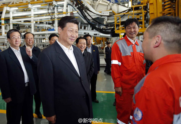 车间里,职工们围拢过来。总书记说,现在进行新型工业化、信息化、城镇化、农业现代化建设,需要装备制造业支撑,掘进机正逢其时。掘进机是工程“穿山甲”,你们自主创新做得很好,掌握了这个技术,工程效率和安全得到极大提升,你们的事业很有意义。