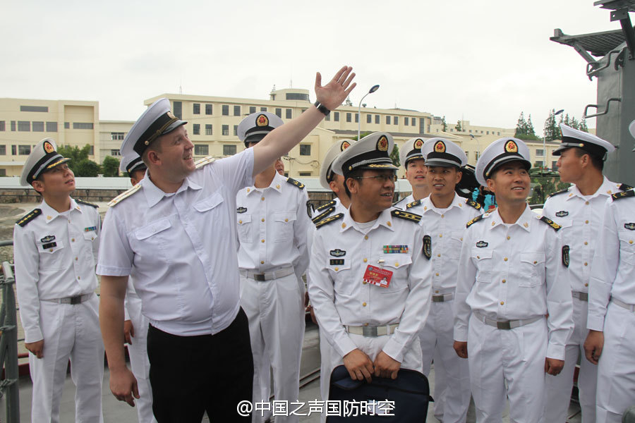 俄军参观中国神盾舰 双方水兵亲密合影(组图)