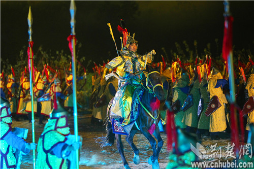 荆楚网消息(记者鲁腾)夜幕下,200匹骏马呼啸而来, 开启了“康熙大帝”传奇的一生。万马奔腾、气壮山河,这就是《鼎盛王朝-康熙大典》的开场。