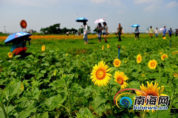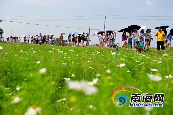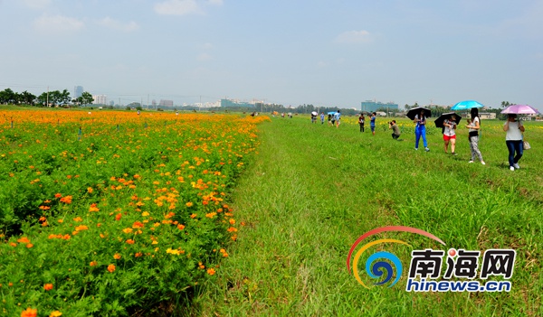 9月24日上午,参加“百城百网海南深呼吸”——2014全国重点网络媒体海南行的全国50多名编辑记者走进万宁万亩花海参观、采访。(南海网记者秦彦摄)