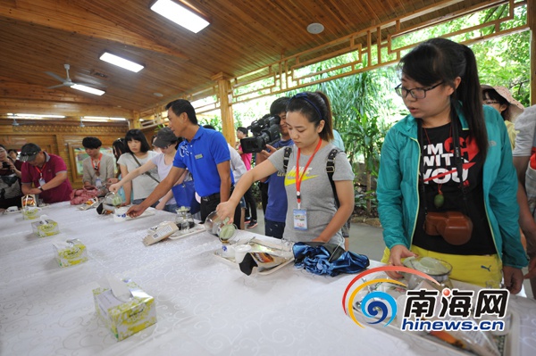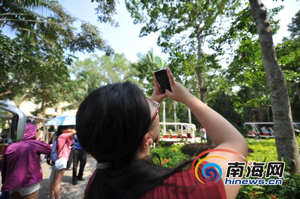 “百城百网海南深呼吸”——2014全国重点网络媒体海南行采访团在万宁兴隆热带植物园参观、欣赏热带植物(南海网记者徐开飞摄)
