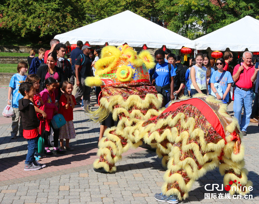 2014年9月26日,马里兰大学孔子学院10周年庆祝活动上的舞狮表演。(张旭 摄)
