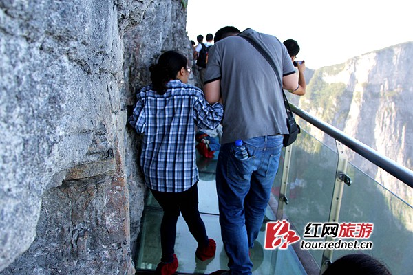张家界玻璃栈道走红 小伙争相扶墙吓到腿软